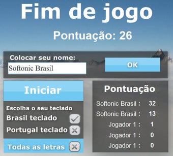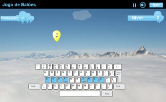 Configure seu teclado em português do Brasil ou de Portugal e clique em “Iniciar”. O desafio é digitar as letras dos balões que despencam do céu sem olhar o teclado físico. Oriente-se com o teclado na tela e os avisos de erro do Jogo de balões e localize a letra certa para vencer no game.